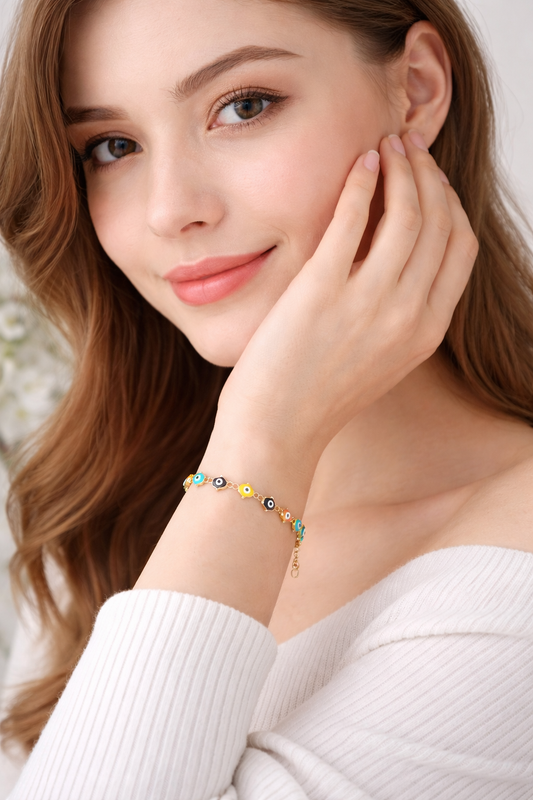 Evil Eyes Bracelet Multi Color, 18K Gold Plated Steel | Waterproof Hypoallergenic Elegant Jewelry – UAE